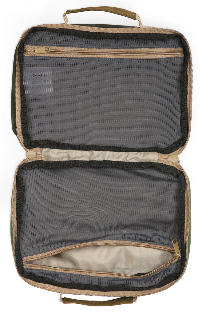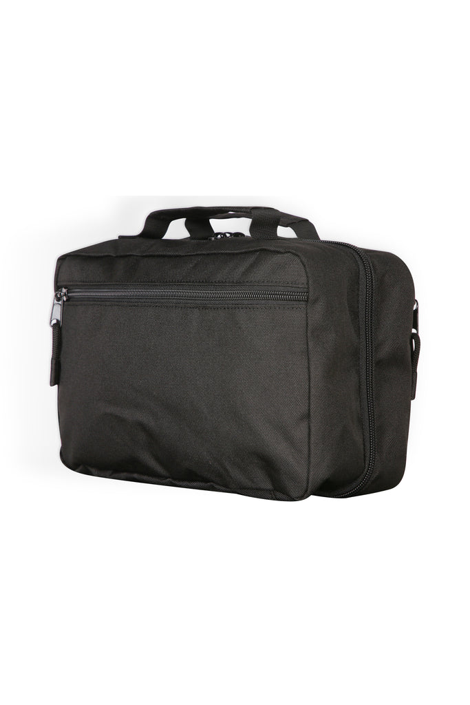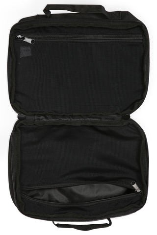 Meet the Take in Tow – your go-to tech-taming sidekick! This fully padded accessory kit rocks a clamshell style, making organization a breeze. With grab handles on each side, featuring our signature pattern webbing detail, it's not just a bag; it's a style statement. Wrangle the tech chaos in style with compartments aplenty, ensuring everything stays snug and secure. From chargers to headphones, the Take in Tow has you covered – because your tech deserves a stylish sanctuary too!
