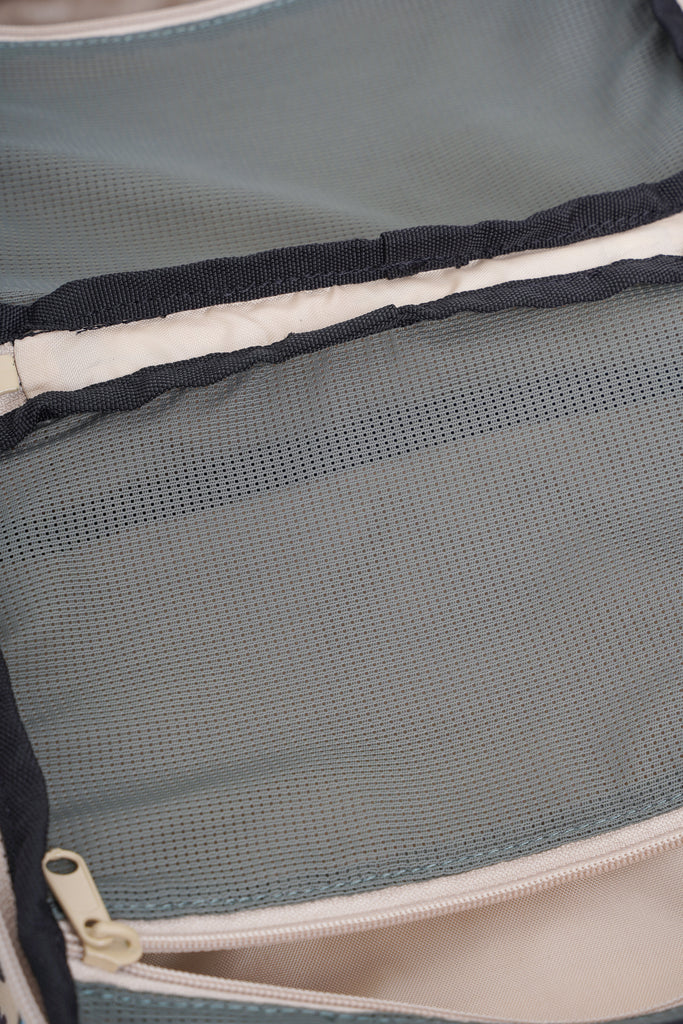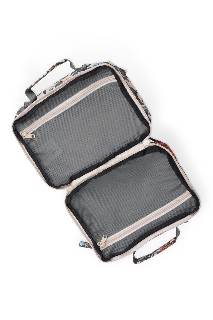 - Main compartment fully opens flat to a two zip mesh compartment design