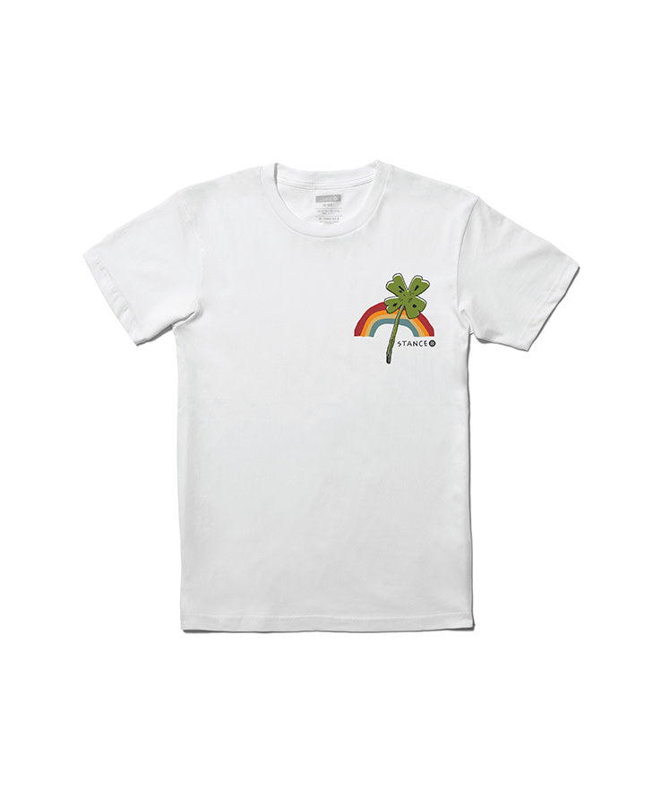 Stance may be known for their socks and underwear but their T-shirt game is just as strong. The Lucky Rainbow T-shirt is built from 100% combed cotton with a midweight and a regular fit ensuring it feels and looks good. A bright White colourway and Lucky Rainbow graphics screen printed front and back set this piece off.