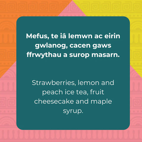 We taste strawberries, lemon and peach ice tea, fruit cheesecake and maple syrup.