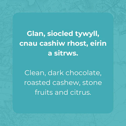 Clean, dark chocolate, roasted cashew, stone fruits and citrus.