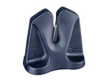 The small manual sharpener is compact and easy to store, and features carbide plates, a self-adjusting angle and silicone pads to hold it firmly in place.