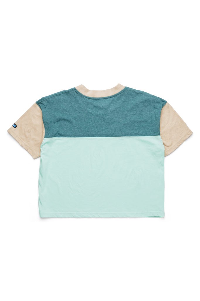 This is the Eevi T-Shirt—a cropped tee made out of super-soft 3.5oz jersey. This is the kind of thing that doesn’t need too much explaining… that fabric feels ace, those block colours are punchy and the shape is short. A summer essential.
